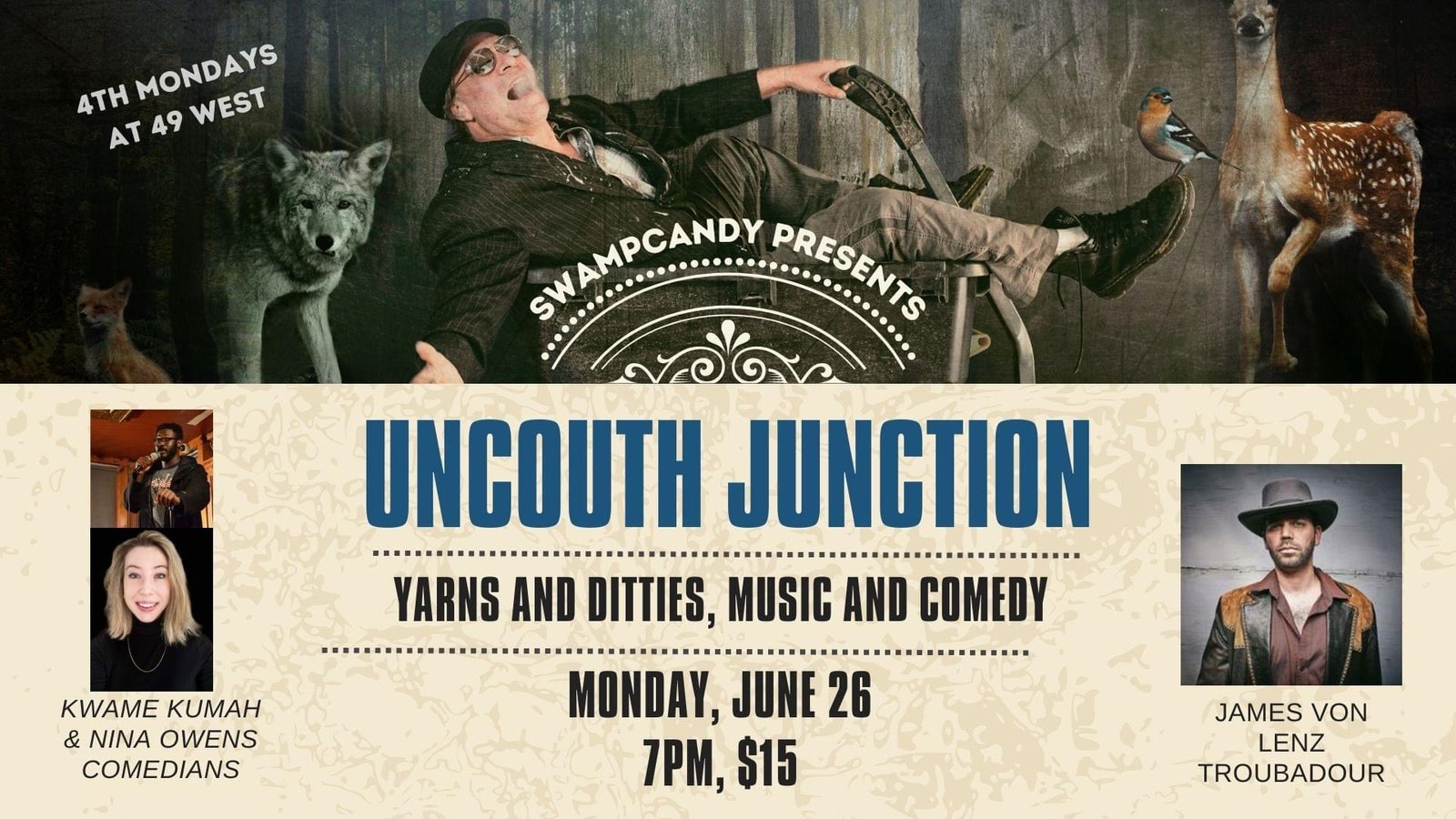 Every fourth Monday @49west_winebar_gallery. Please call 410-626-9796 for reservations because space is limited. Show starts at 7 PM. Swampcandy hosts this great showcase of comedians and songwriters. This month we are welcoming @doc.pine @nina_shouldnt_do_comedy @kwame_kumah